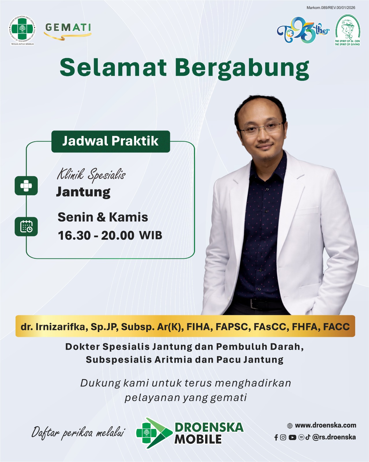 Selamat datang dan bergabung dr. Irnizarifka, Sp. JP, Subsp. Ar(K), FIHA, FAPSC, FAsCC, FHFA, FAC